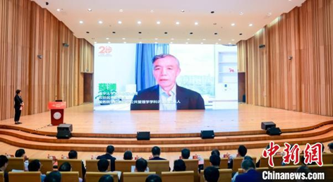 厦大公共事务学院20日举行建院20周年发展大会,国务院学位委员会公共管理学学科评议组召集人薛澜代表评议组通过视频致辞表示祝贺。厦大供图