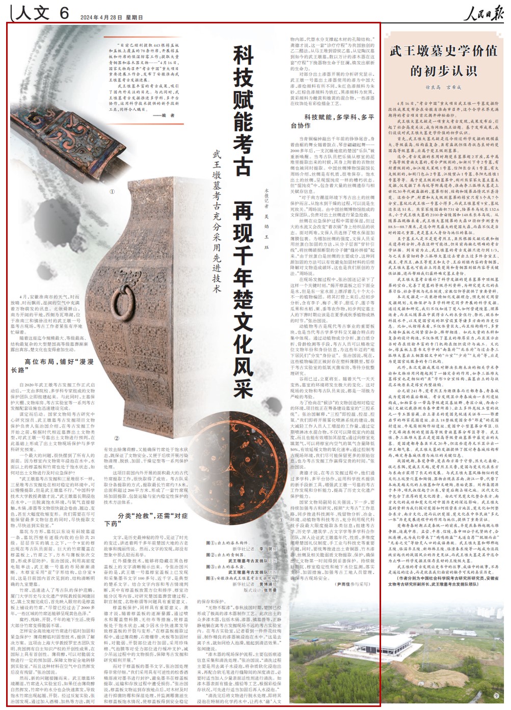 龚德才说,在考古发掘过程中,他们通过多学科、多平台协作,运用科学技术提供的新手段新工具,增强武王墩一号墓的考古工作发现和分析能力,提高了历史文化遗产保护能力。