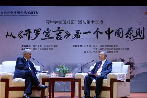 5月25日上午,“两岸学者面对面”活动第十三场在厦门大学举办,主题为“从《开罗宣言》看一个中国原则”。