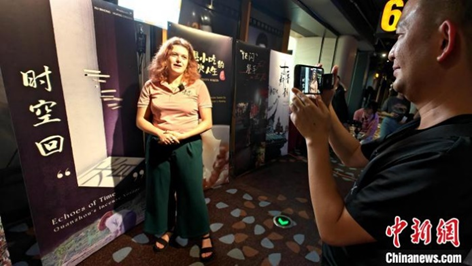 来自斯洛伐克的Vanesa Nipc?ova?在展映式现场接受媒体采访。 中新网记者 杨伏山摄