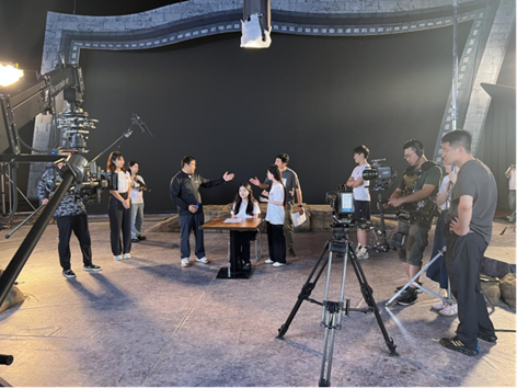 接下来,队员们亲手操作了专业的摄影机器,通过镜头“讲故事”,进一步感受到了电影拍摄制作的魅力所在,体验到剧组工作“讲好一个故事”背后付出的汗水和努力。体验结束,同学们与经验丰富的工作人员进行了深入交流和热烈探讨。实践队成员纷纷表示,这次难得的体验受益匪浅,开阔了视野,更为今后的学习和职业生涯打下了坚实的基础。