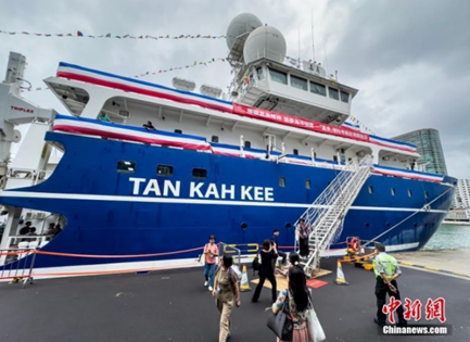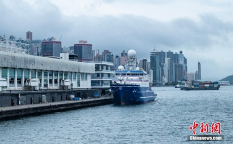 图为“嘉庚”号科考船停泊于尖沙咀码头。中新网记者 侯宇 摄
