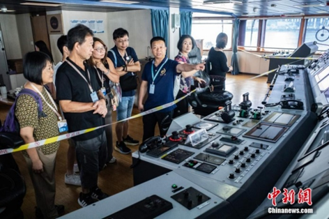 8月18日,香港市民前往停泊在尖沙咀码头的厦门大学“嘉庚”号海洋科考船参观。中新网记者 侯宇 摄