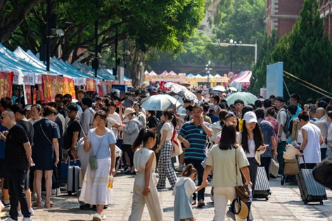 一辆辆满载着新生和家长的大巴车在科学艺术中心门口停下,褪去高中时代的青涩,“新鲜人”们第一次踏入厦大校园,他们的神情中既有紧张与不安,也有兴奋与期待。在家人的陪伴下,新生有的扛起大包小包,有的推着特大号拉杆箱,有的则忙于在芙蓉湖畔、鲁迅像等知名景点前与家人合影留念;更有来自山东的新生,在七八位亲友的簇拥下前来报到,喜提一次全家“厦大游”。
