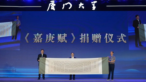 9月21日,第九届厦门大学全球校友会会长秘书长暨校友代表大会在四川成都召开。本届大会以“传承嘉庚精神,凝聚奋进力量”为主题,汇聚来自全球各地校友代表及各界嘉宾,共同缅怀陈嘉庚先生的卓越贡献,探讨在新时代背景下如何继承和发扬“嘉庚精神”,携手推动学校及校友事业蓬勃发展。校友捐赠作品《嘉庚赋》,礼赞陈嘉庚先生光辉事迹和崇高精神。