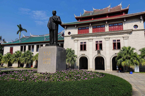 A statue of Tan Kah Kee in front of the Qunxian Complex at Xiamen University in Fujian Province, China, November 13, 2016. /CFP