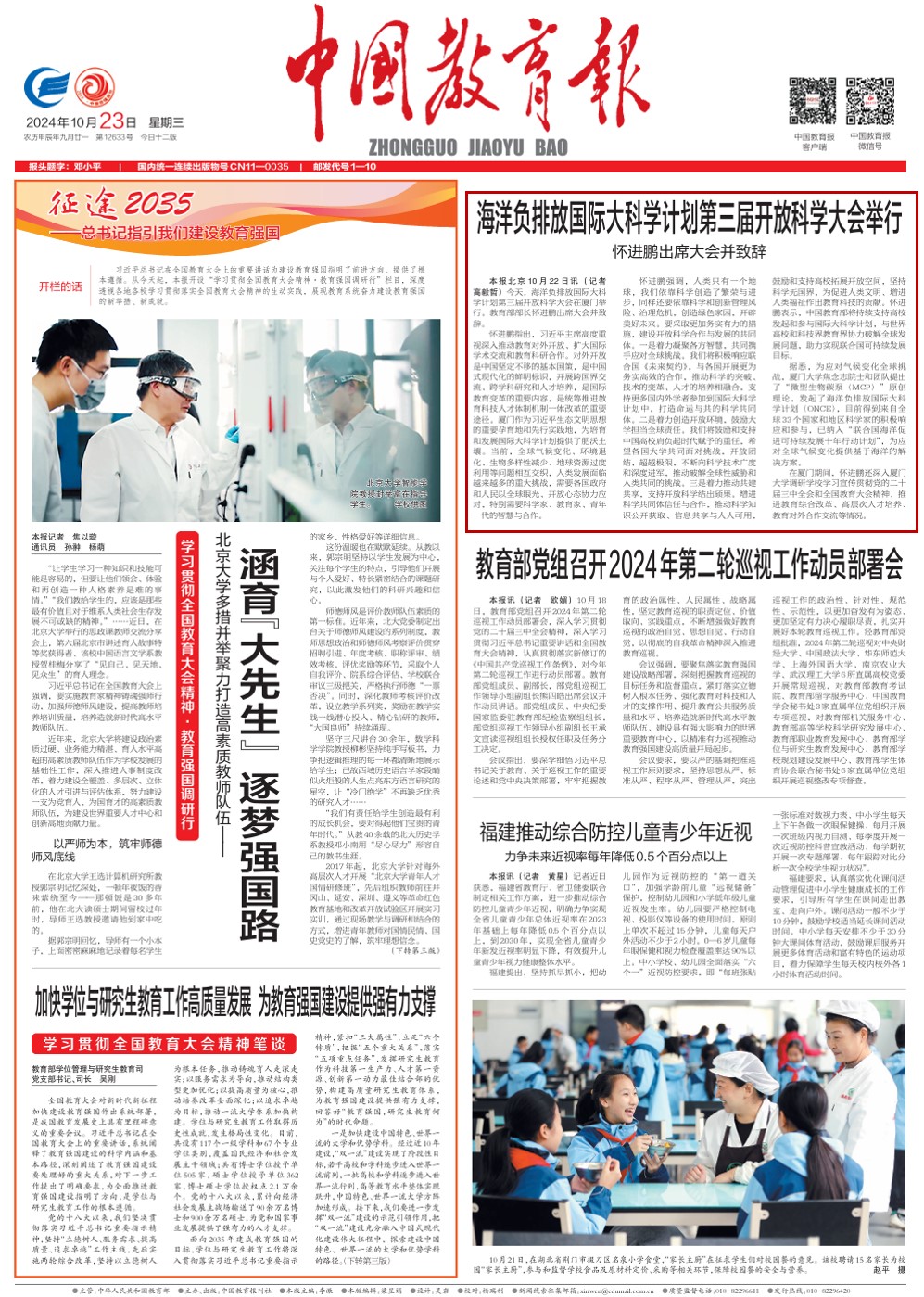 怀进鹏指出,习近平主席高度重视深入推动教育对外开放、扩大国际学术交流和教育科研合作。对外开放是中国坚定不移的基本国策,是中国式现代化的鲜明标识,开展跨国界交流、跨学科研究和人才培养,是国际教育变革的重要内容,是统筹推进教育科技人才体制机制一体改革的重要途径。厦门作为习近平生态文明思想的重要孕育地和先行实践地,为培育和发展国际大科学计划提供了肥沃土壤。当前,全球气候变化、环境退化、生物多样性减少、地球资源过度利用等问题相互交织,人类发展面临越来越多的重大挑战,需要各国政府和人民以全球眼光、开放心态协力应对,特别需要科学家、教育家、青年一代的智慧与合作。
