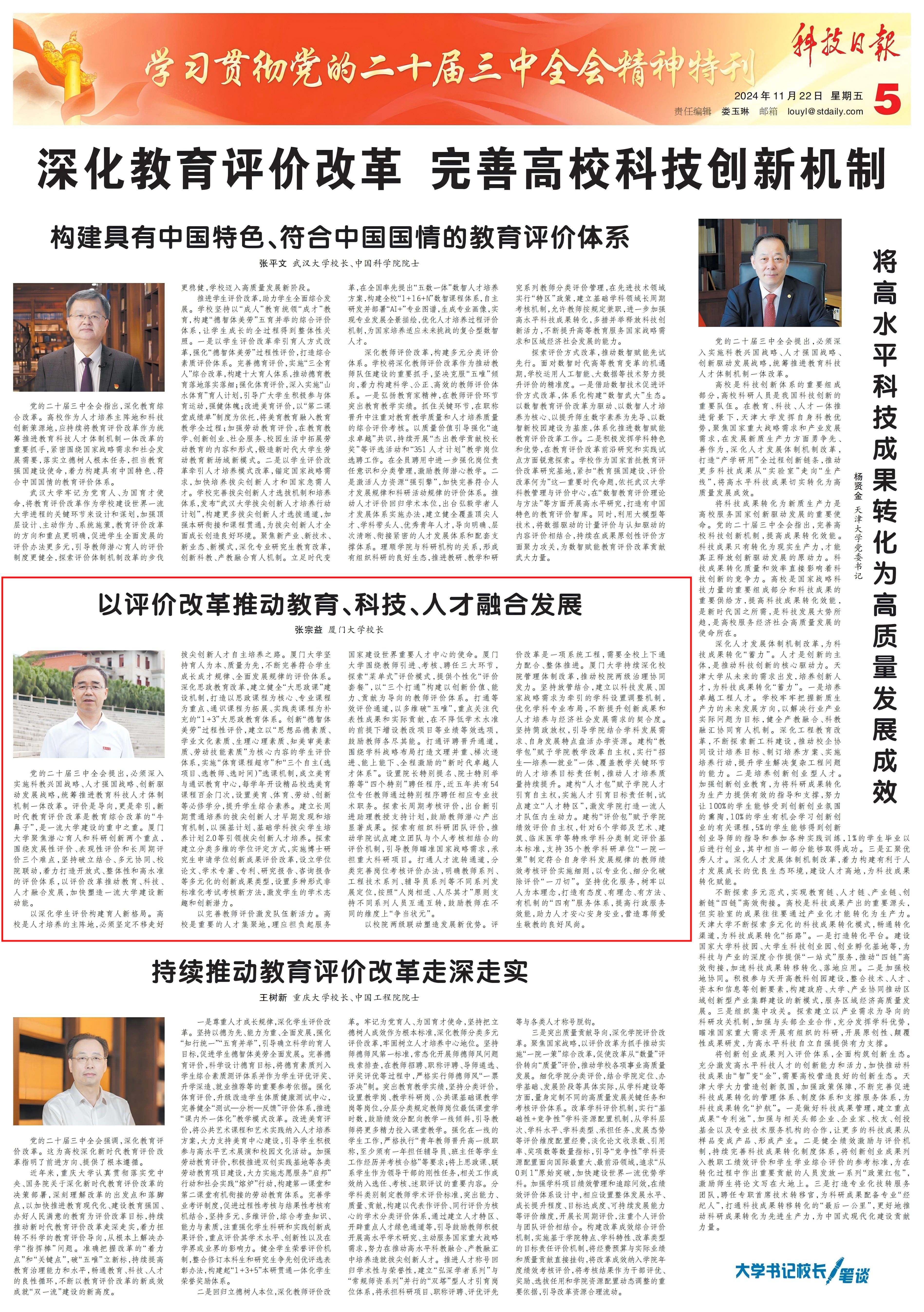 党的二十届三中全会提出,必须深入实施科教兴国战略、人才强国战略、创新驱动发展战略,统筹推进教育科技人才体制机制一体改革。评价是导向,更是牵引,新时代教育评价改革是教育综合改革的“牛鼻子”,是一流大学建设的重中之重。厦门大学聚焦潜心育人和科研创新两个重点,围绕发展性评价、表现性评价和长周期评价三个难点,坚持破立结合、多元协同、校院联动,着力打造开放式、整体性和高水准的评价体系,以评价改革推动教育、科技、人才融合发展,加快塑造一流大学建设新动能。
