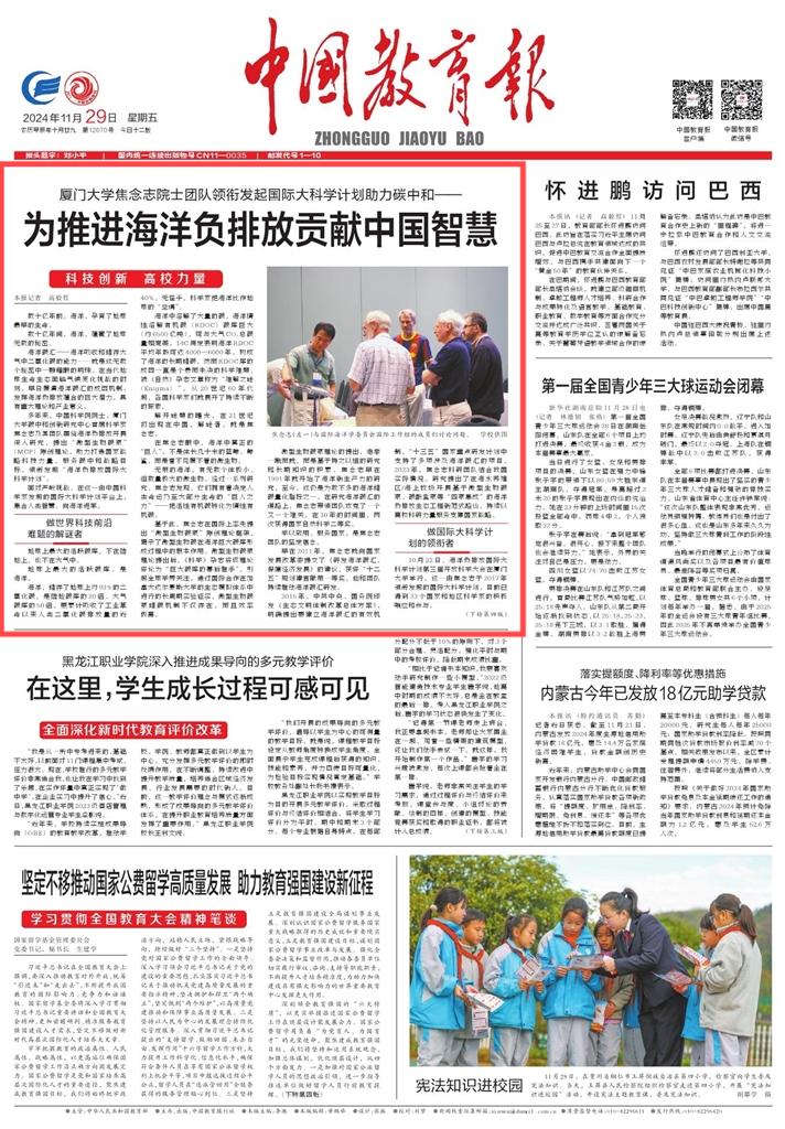 早在2011年,焦念志就向国家发展改革委提交了《研发海洋碳汇,保障经济发展》的建议,获评“十二五”规划建言献策一等奖,他和团队持续推动海洋碳汇研发。