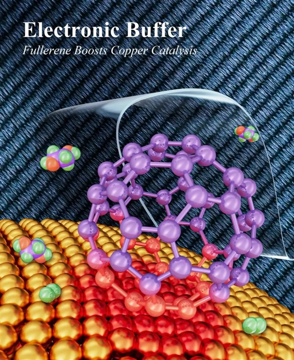 最终,由厦门大学等多个研究团队联手发展的富勒烯—铜—二氧化硅催化剂,利用铜与富勒烯之间的可逆电子转移,形成富勒烯的电子缓冲效应,稳定催化剂中亚铜成分,实现了草酸二甲酯常压催化加氢制乙二醇,并克服了副反应较多且催化剂易失活等问题。