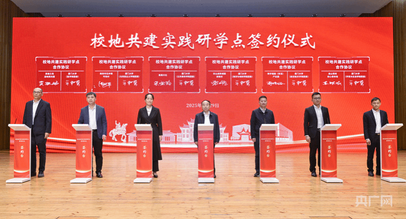 在校地共建实践研学点签约仪式上,厦门大学党委常委、宣传部/教师工作部部长高和荣代表厦门大学12个二级学院与南部片区12个研学点签署共建协议。现场发布了《全面推进“行见八闽” 大思政课研学实践圈建设(南部片区)三年行动计划(2025—2027年)》。该行动计划由厦门大学协同南部片区各成员单位共同制定,全面推进“行见八闽”大思政课研学实践圈建设,加快构建区域特色、福建风格的“大思政”实践育人体系。