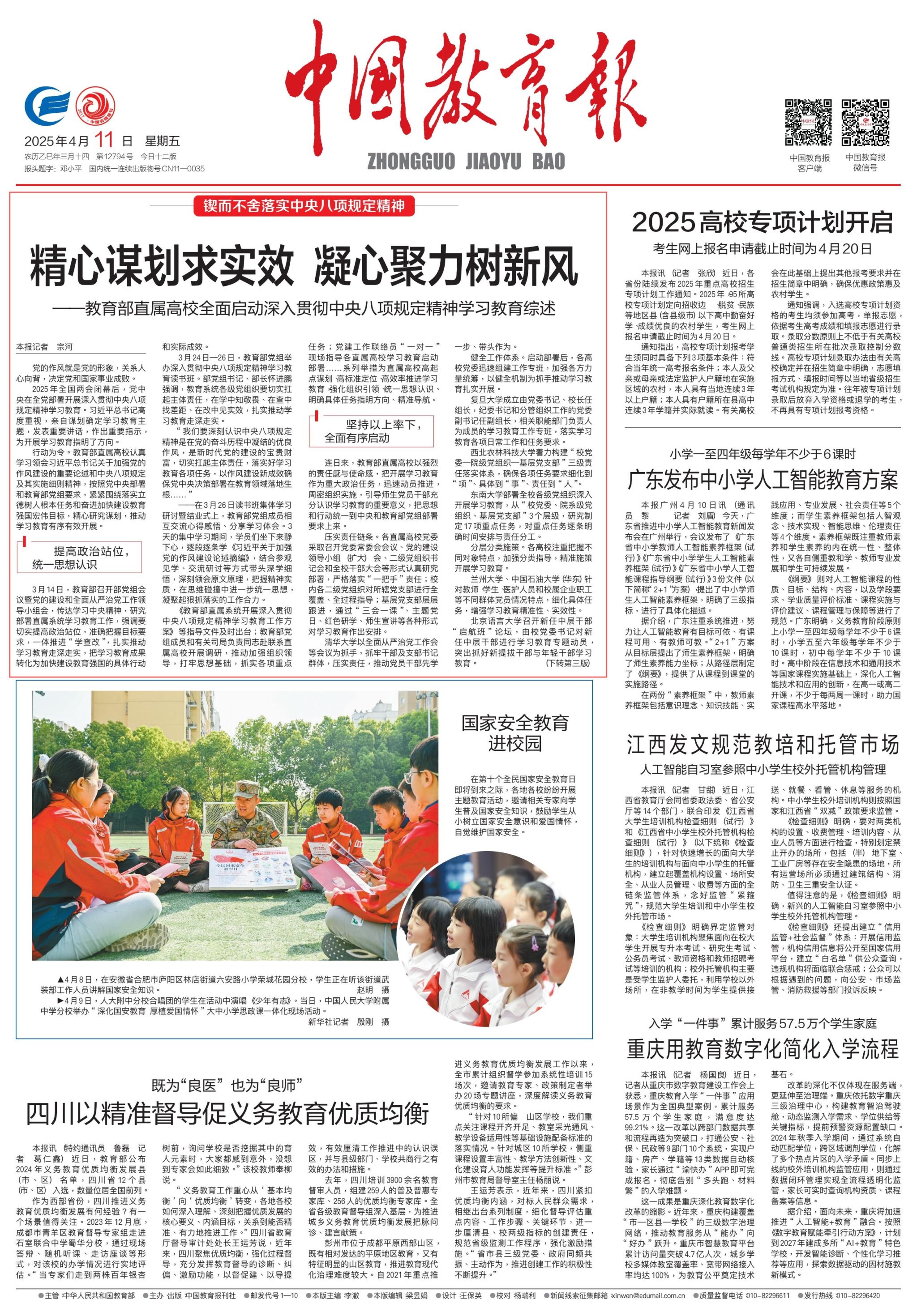 3月24日—26日,教育部党组举办深入贯彻中央八项规定精神学习教育读书班。部党组书记、部长怀进鹏强调,教育系统各级党组织要切实扛起主体责任,在学中知敬畏、在查中找差距、在改中见实效,扎实推动学习教育走深走实。