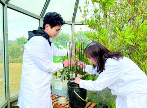 采样、烘干、分类、研磨、测量……走进厦门大学环境与生态学院的实验室,只见学生身穿实验服,几人一组,手持各类仪器设备,不停“摆弄”着面前成堆的黄色树叶与袋装的深褐色粉末。该院教授陈鹭真穿梭在实验台边,与学生低语交流。