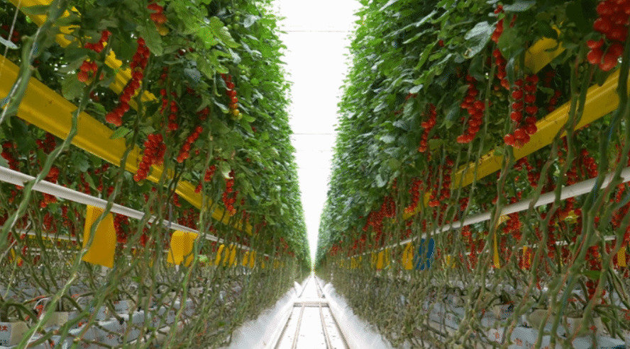 凯盛(银川)现代智慧农业科技有限公司,在闽宁镇打造的智慧农业产业园玻璃温室里,种植番茄。(永宁县委宣传部供图)