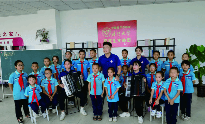 来自厦门大学研究生支教团的老师们教闽宁镇的孩子们唱歌。(永宁县委宣传部供图)