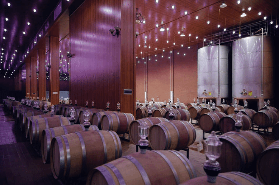 闽宁镇贺兰神酒庄酿酒车间的橡木桶。(永宁县委宣传部供图)