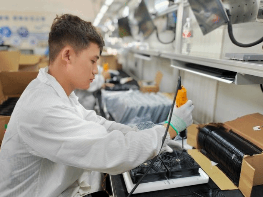 闽宁镇闽宁产业园的星汉智能科技(宁夏)有限公司的生产车间里,一个个零部件经过加工和组装,成为一台台超算服务器。不久后,这些设备将出口到共建“一带一路”国家。
