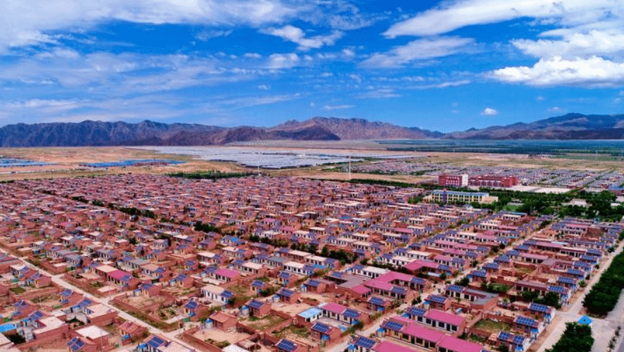 如今的闽宁镇,加速拥抱新质生产力,又有了新名片——“绿电小镇”,一块块蓝色光伏板整齐排列在空地、屋顶。(国网宁夏电力有限公司供图)