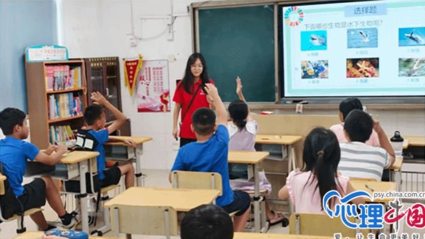 图为实践队员给学生开展心理授课 唐泽雨/摄影