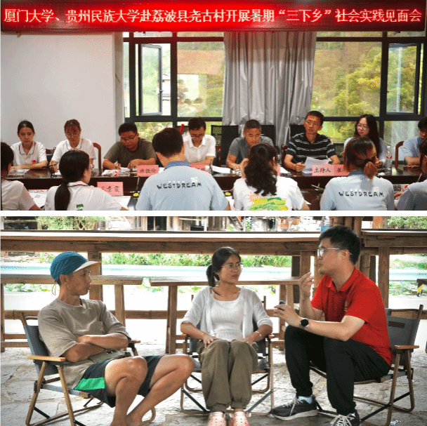 面对扎染技艺人才断层与传承体系零散的困境,实践队双管齐下,深度访谈非遗传承人寻根问源,并与尧古村负责人深入座谈。贵州省教育厅派驻尧古村第一书记崔凯分享了基层破局经验:通过建立“党支部+传承人+村民”联动机制,已培养30余名传承人与相关人才,并成立“尧古村传统文化保护协会”,系统性推进技艺保护与创新发展。