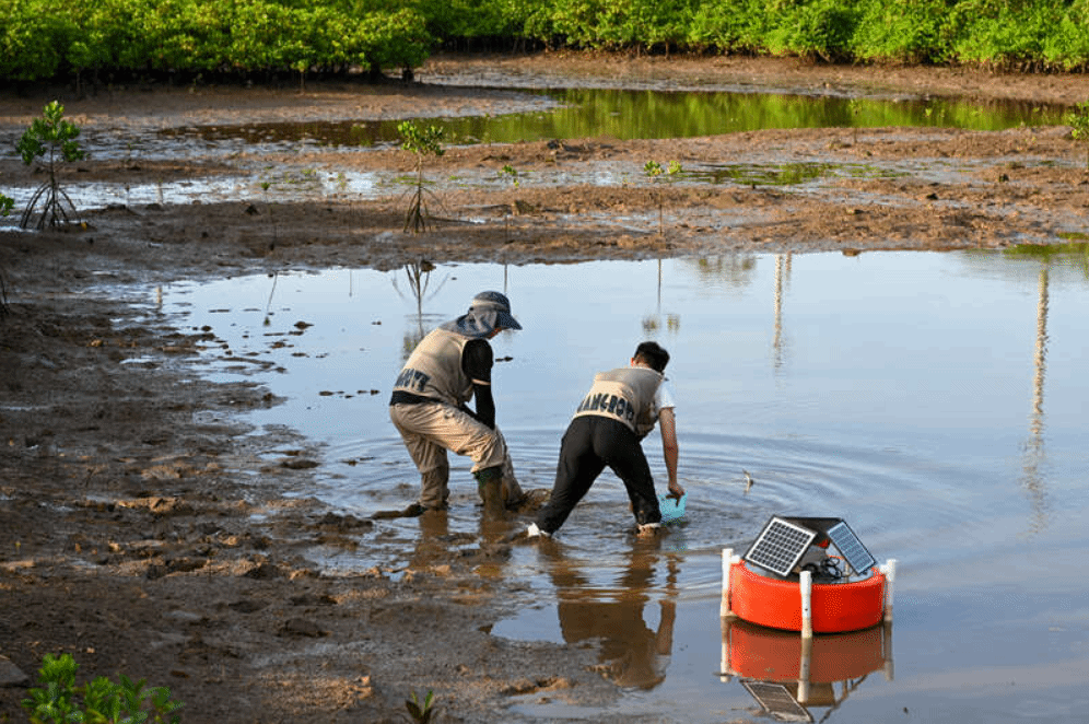 实践队在海南东寨港开展生物多样性调研。彭依依供图