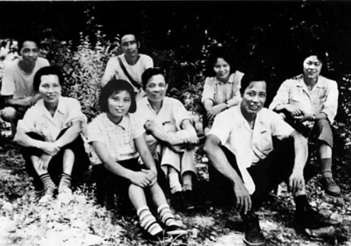 1955年,唐仲璋(右四)在野外调查时与同事、学生合影。
