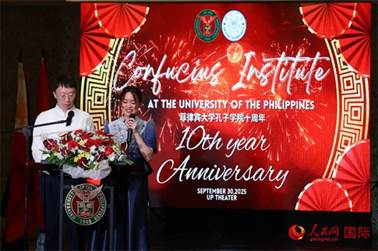 菲律宾大学孔子学院在菲大迪利曼校区大学剧院成功举办十周年庆典活动。人民网记者 樊帆摄