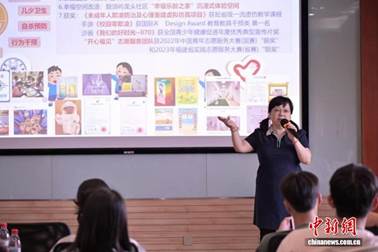 9月27日,在“第一届两岸跨代幸福健康营”上,江宜珍为两岸师生介绍厦门大学幸福研究室。(受访者供图)