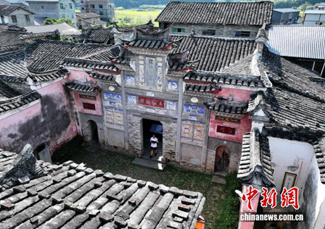 2025年10月17日,福建南平武夷山市五夫镇参访者络绎不绝。图为位于五夫镇兴贤古街的兴贤书院,朱熹少时在这里求学。 (无人机照片)中新社记者 张斌 摄