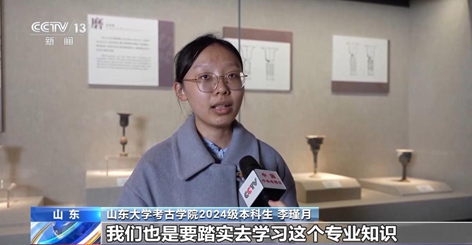 山东大学考古学院2024级本科生 任书毅:站在那些文物面前的时候,惊叹于先民他们的智慧与审美,让我们与古人产生了一种跨时空的连接,会让我有很坚定的文化自信与文化自豪感。