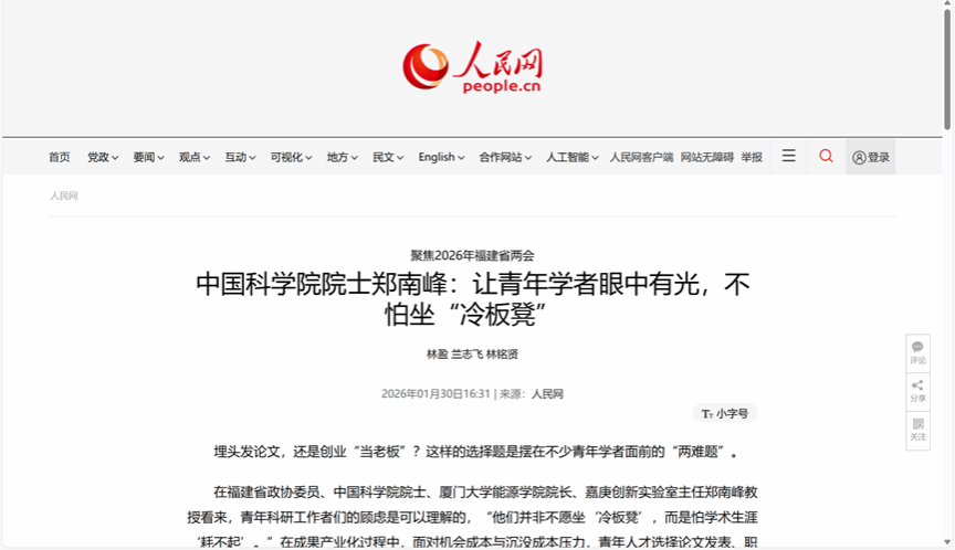 在福建省政协委员、中国科学院院士、厦门大学能源学院院长、嘉庚创新实验室主任郑南峰教授看来,青年科研工作者们的顾虑是可以理解的,“他们并非不愿坐‘冷板凳’,而是怕学术生涯‘耗不起’。”在成果产业化过程中,面对机会成本与沉没成本压力,青年人才选择论文发表、职称晋升的稳妥路径情有可原。