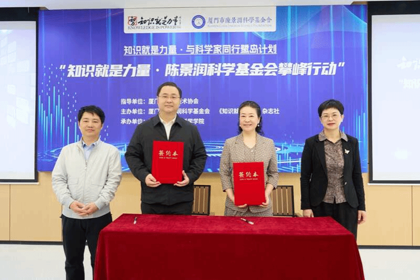 “缅怀景润先生”科学家精神讲座暨“攀峰行动”启动仪式随后举行。活动由厦门市陈景润科学基金会与《知识就是力量》杂志社联合主办,厦门市科协指导,厦门大学数学科学学院承办。陈景润科学基金会与《知识就是力量》杂志社签署战略协议,启动“知识就是力量·陈景润科学基金会攀峰行动”。项目旨在“传承科学家精神,培育数学创新人才”,立足“十五五”发展规划,整合双方在科学家资源、科普活动经验与全媒体传播方面的专业优势,打造线上线下融合的数学科普与教育实践体系,助力青少年数学素养提升。