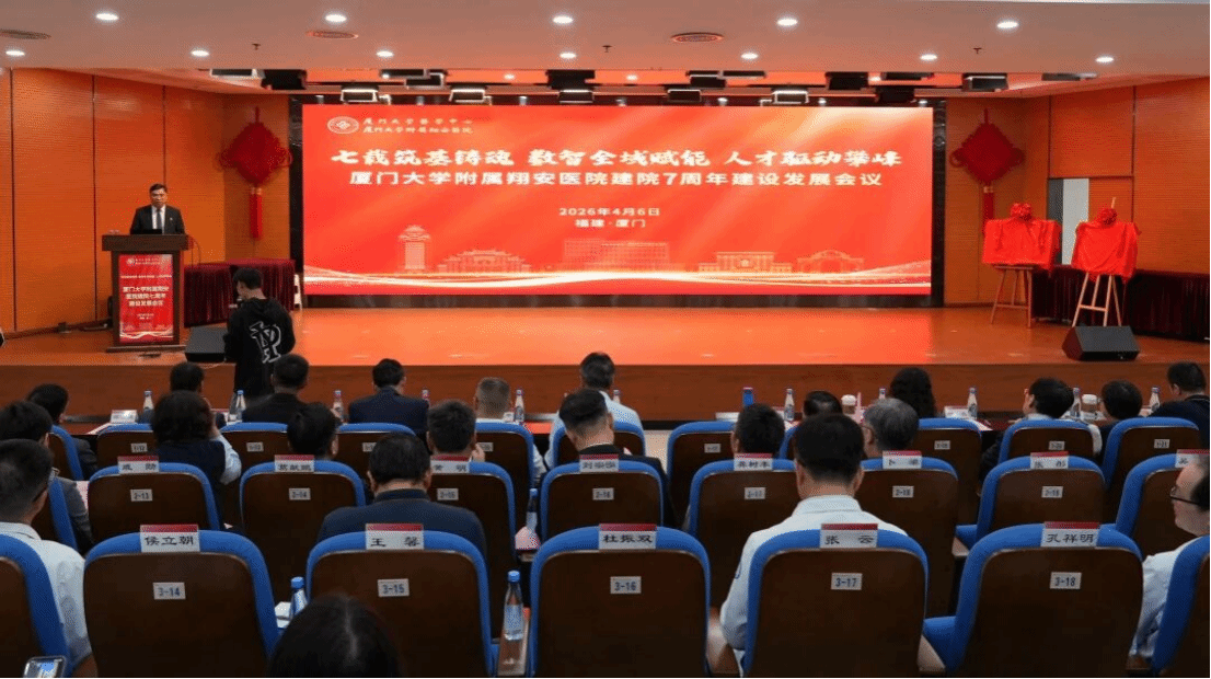 4月6日,厦门大学附属翔安医院(以下简称翔安医院)建院七周年建设发展会议召开。本次会议以“七载筑基铸魂,数智全域赋能,人才驱动攀峰”为主题,盘点七年硕果,表彰先进标杆,共启高质量发展新征程,为“十五五”开局之年吹响奋进号角。