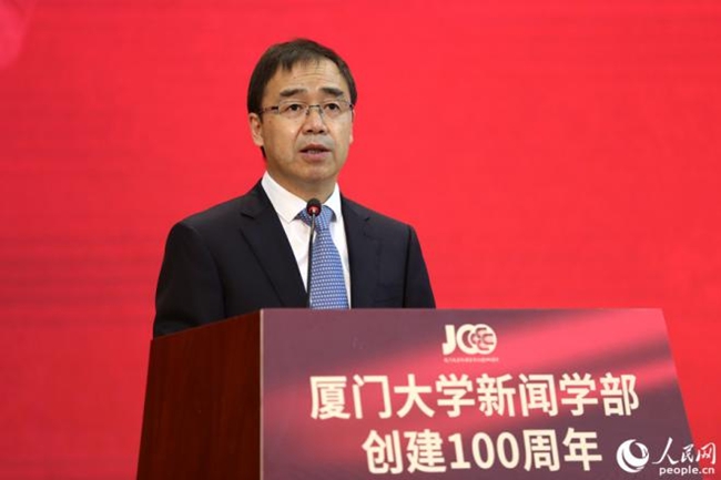 厦门大学校长张宗益在致辞中指出,厦门大学新闻传播学科教育始终走在时代前列,有“填补了国内文科教育之空白”之美誉。百年来筚路蓝缕,初心如磐,秉持着“特色乃做强之道”的指导思想,在专业人才培养、学科建设、中华文化海外传播等学术研究领域作出贡献。他表示,站在“两个一百年”的历史交汇点上,新闻传播学院要加强马克思主义新闻观教育,大力培养新闻传播卓越人才,不断提高科研水平,积极服务国际传播能力建设。持续探索蕴含厦门大学人文特色和情怀的新闻传播教育,努力打造厦大新闻传播学科高原上的新高峰。