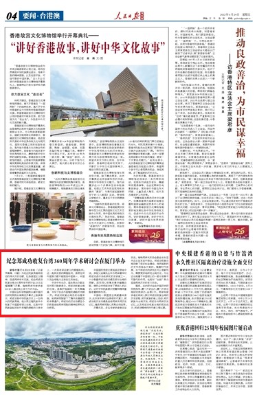 人民日报海外版:纪念郑成功收复台湾360周年学术研讨会在厦门举办