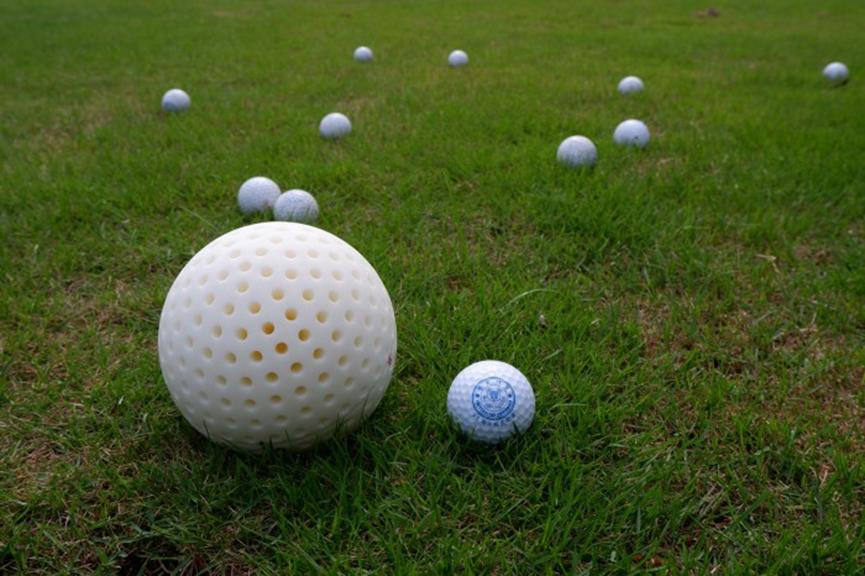 陈焕阳教授团队设计的类似高尔夫球的装置可以改变放置在里面的物品的散射声波。厦门大学物理科学与技术学院供图