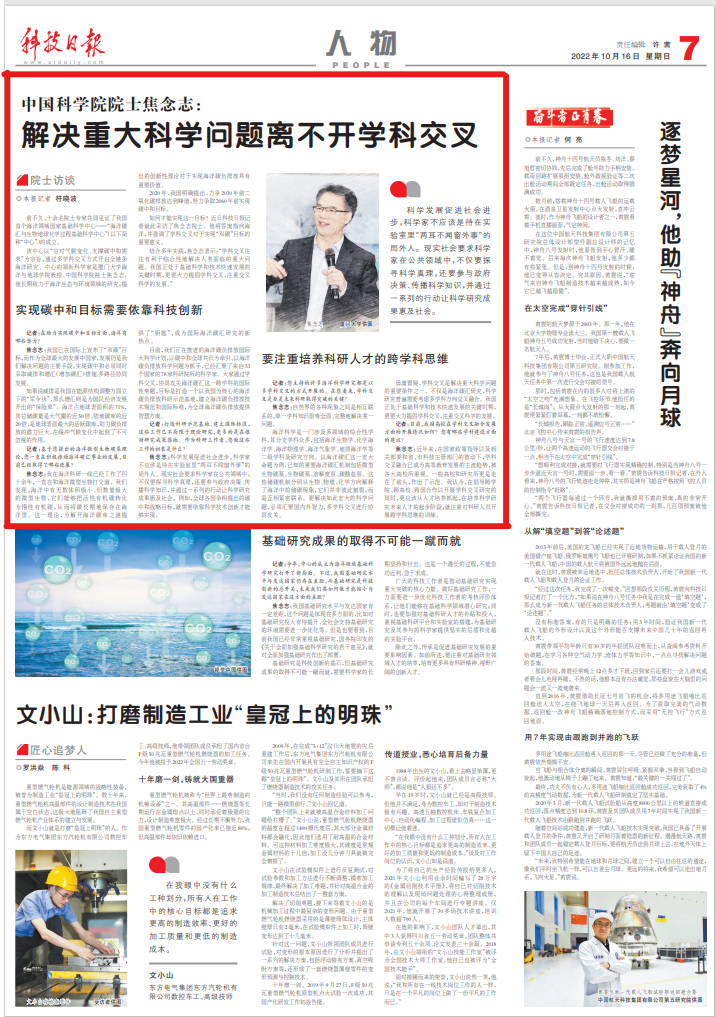 结合多年实践,焦念志表示:“学科交叉往往有利于综合性地解决人类面临的重大问题。我国正处于基础科学和技术快速发展的关键时期,更要大力提倡学科交叉,注重交叉科学的发展。”