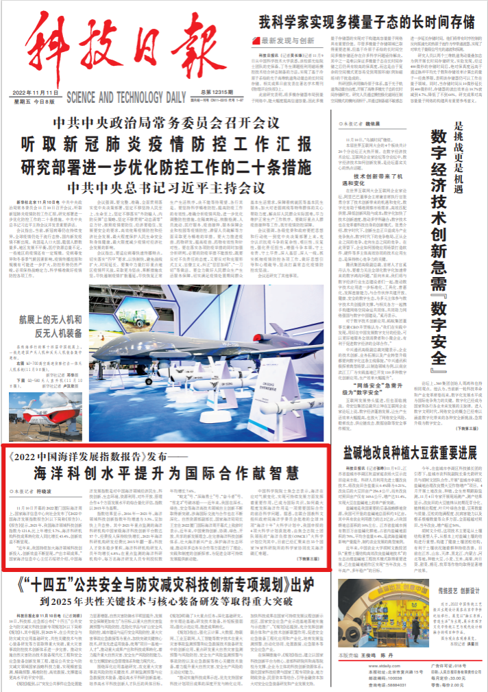 11月10日开幕的2022厦门国际海洋周上,国家海洋信息中心向社会发布了《2022中国海洋发展指数报告》(以下简称《报告》)。《报告》显示,2021年,我国海洋领域科技创新指数为121.8,比上年增长5.7%,海洋科研机构科技成果转化收入同比增长43.4%,创新效益不断显现。