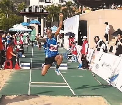 2019年,来自肯尼亚的留学生王布谷参加厦门大学校运会三级跳项目比赛,获第一名。
