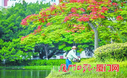厦大物业绿化保洁员辛勤劳动,让厦大校园更美丽。图为保洁员修剪草木。(本报记者 林铭鸿 摄)