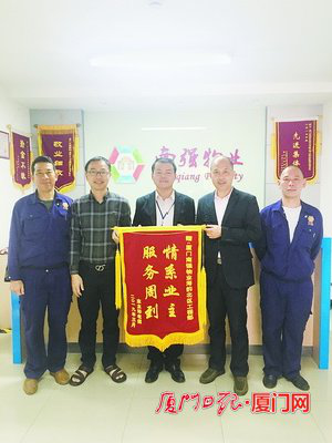 海韵北区业主向厦大物业项目服务处送来锦旗,感谢物业的优质服务。