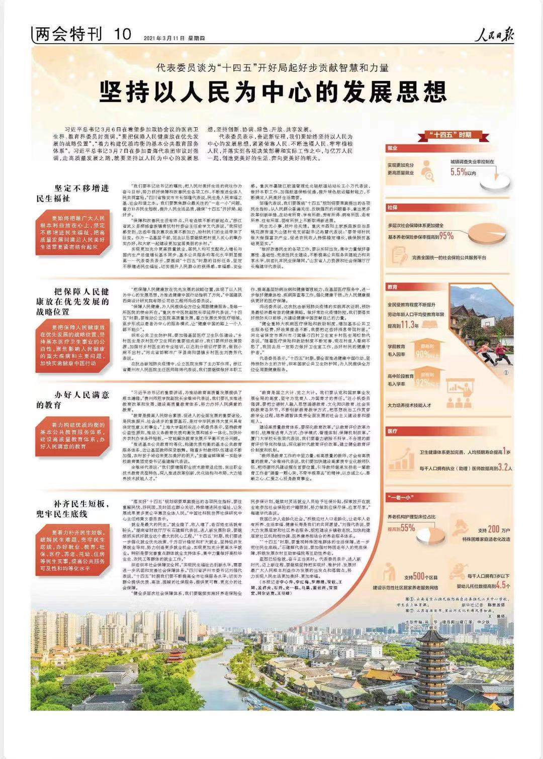 织密织牢社会保障安全网。“实现民生福祉达到新水平,需要进一步巩固和完善社会保障体系。”四川省泸州市委书记刘强代表说,“十四五”时期我们要不断提高全市社保服务水平,切实为群众提供优质、高效、温暖的社保服务,提供更可靠、更充分的社会保障。