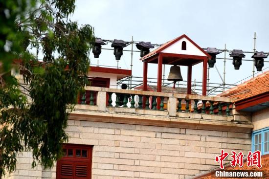 建南大礼堂小天台上的黑色大铁钟,厦大敲钟传统从建校之初延续至今,日夜陪伴着一代又一代厦大莘莘学子,成为中国高校里的一道独特风景。(王东明 摄)