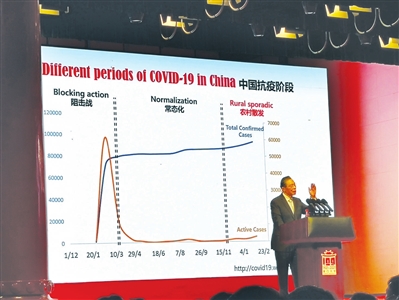 随后,他带来题为《新冠防控策略与疫苗研发》的报告。报告讲解精彩、内容丰富、站位高远、观点深刻,展示了“无双国士”的智慧和风范,也诠释了“医者仁心”的责任与担当。