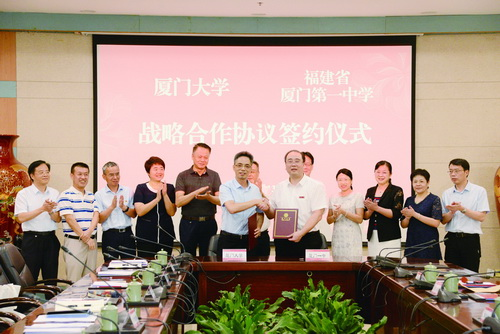 ▲厦门大学和厦门一中正式签署了战略合作协议。 陈毅敏 摄