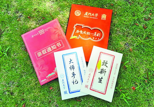 ▲录取通知书文件袋及“三件套”。(图片来自厦大官方公众号)