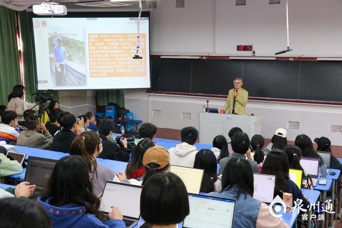 11月12日,厦大马克思主义学院原宗丽的“毛泽东思想和中国特色社会主义理论体系概论”思政课课堂上,请来了一位特殊的讲述人——潘维廉。这位在中国已经生活了30多年的外籍教师以“中国改革开放给世界的启示”为题,结合自身经历为同学们带来了一堂别开生面的思政课。