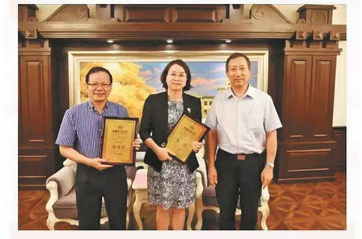 林圣彩(左一)和妻子李蓬(中)是夫妻院士。