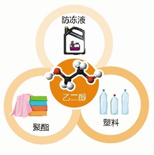 塑料和纺织日用品均广泛产自聚酯材料,而乙二醇是聚酯工业的两个重要单体之一,目前乙二醇的全球年需求量达数千万吨级。