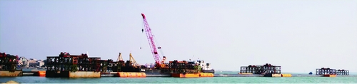 ■千米级无固定桩整体式沉管工程施工现场